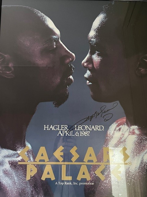 Marvin Hagler vs. Sugar Ray Leonard “Super Fight” 1987 Las Vegas Poster – Signed by Sugar Ray Leonard (Unauthenticated)