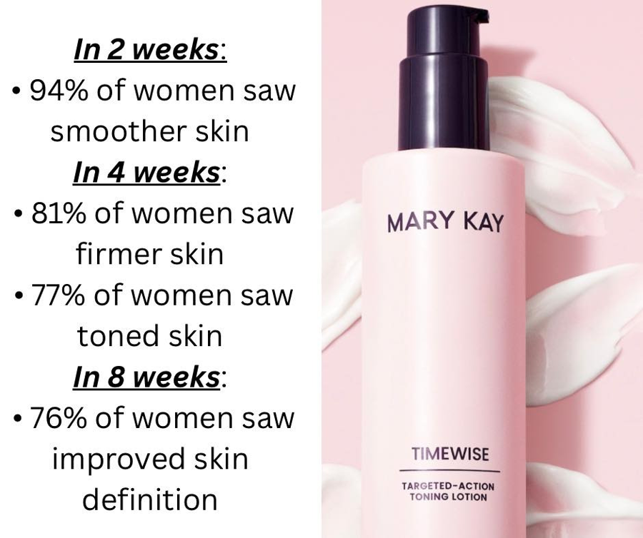 Bring skin care to your entire body and see benefits after two weeks. Use this newly supercharged, antioxidant body lotion with proven results to help reduce the visible signs of premature skin aging beyond the face and neck. Your favorite skin firming lotion is back and better with the extensively tested and patented TimeWise® 3D Complex — the same powerhouse found in our TimeWise® Miracle Set — making it the perfect complement to your skin care regimen. Each application provides visible body-toning benefits and 24 hours of hydration to help reinforce skin’s ability to look its best longer. Support your skin by giving it the increased firmness, definition and smoothness it deserves. It’s time to replace multiple body care products with one multi-benefit power product that allows you to extend your skin care and self care everywhere.