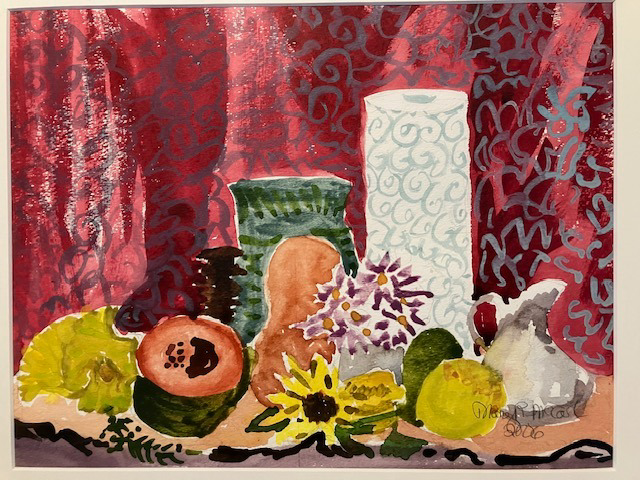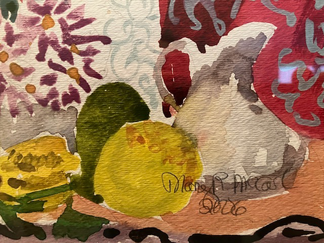 Beautiful framed watercolor, STILL LIFE WITH CANTALOUPE, by Mary Rhinelander McCarl, signed. 2006.