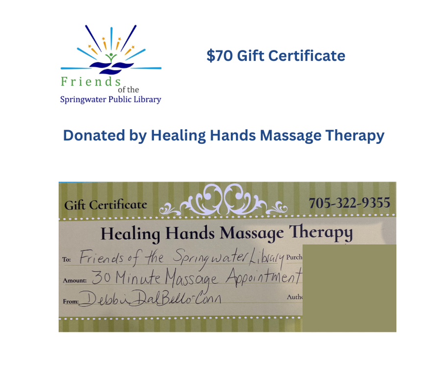 $70 Gift Certificate donated by Healing Hands Massage Therapy