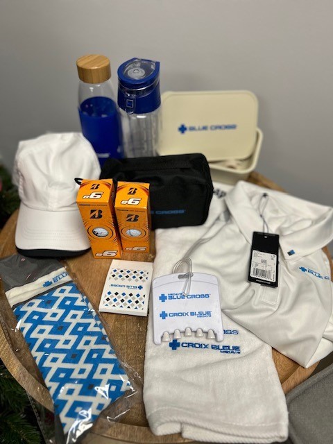 Ball Cap, Water Bottle, Travel Drink Bottle, Polo Shirt Large, Golfer's Towel, Pair socks, First Aid Kit, Golf Tees, Bio-Plant Lunch kit, ½ doz Golf balls. Value $100 total.