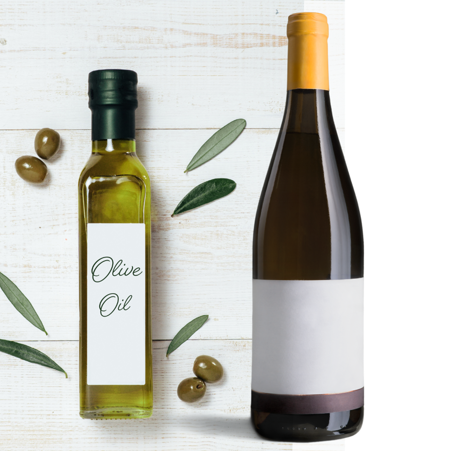 Taste the Mediterranean! This basket includes a 750 ml bottle of this fall's harvest of Al'Ard organic extra virgin Palestine olive oil, plus a bottle of red wine.