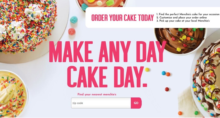 This certificate is good for any one (1) Round Cake from Menchie's Frozen Yogurt at UTC. The Froyo You Love, Big Enough to Share We just one-upped ice cream cakes. We packed all the deliciousness of Menchie’s froyo (and more!) into a cake that will surprise and delight your guests. Let them believe it’s ice cream cake. It’ll be our little secret.