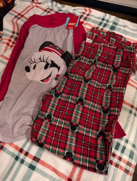 🎄🎀 Merry Minnie PJ Set – Women’s Size Large 🎀🎄 Bring a touch of Disney magic to your cozy holiday nights with the Merry Minnie PJ Set! This adorable women’s size large pajama set features festive Minnie Mouse Christmas designs, perfect for lounging by the tree, sipping cocoa, or enjoying a merry movie marathon. Soft, comfortable, and delightfully festive, these pajamas add the perfect blend of holiday cheer and Minnie charm. Whether you’re treating yourself or gifting a Disney fan, the Merry Minnie PJ Set is sure to bring big smiles and warm, snuggly vibes all season long. 🎁 Bid now and step into Christmas comfort—Minnie style!