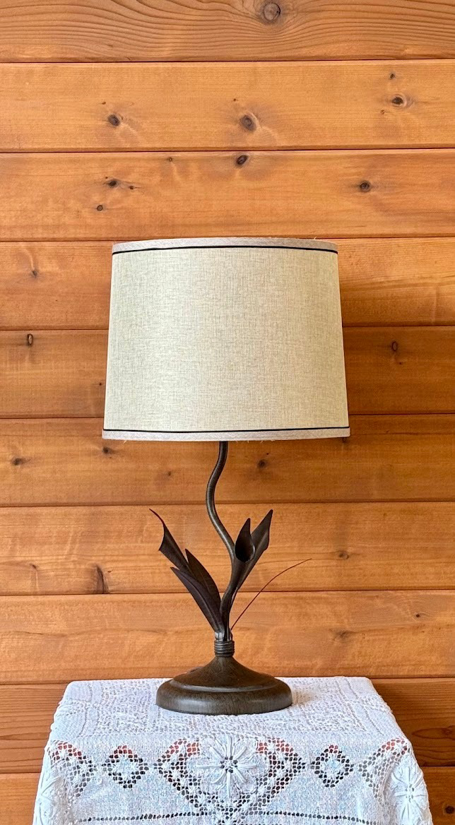 The Excelsior mid-century modern style brown metal calla lily sculpture functions as a table lamp. 23 inches tall.