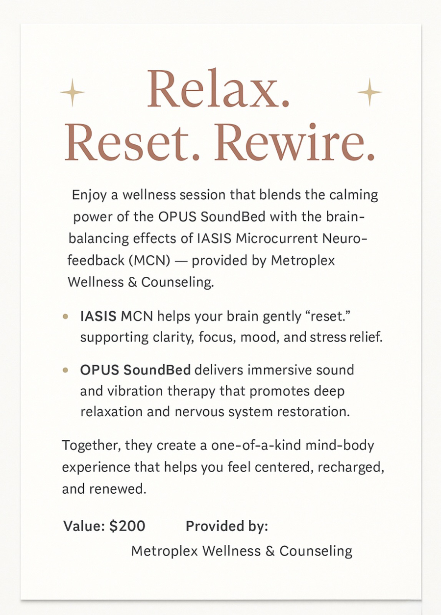 Metroplex Wellness & Counseling Relax. Reset. Rewire Session