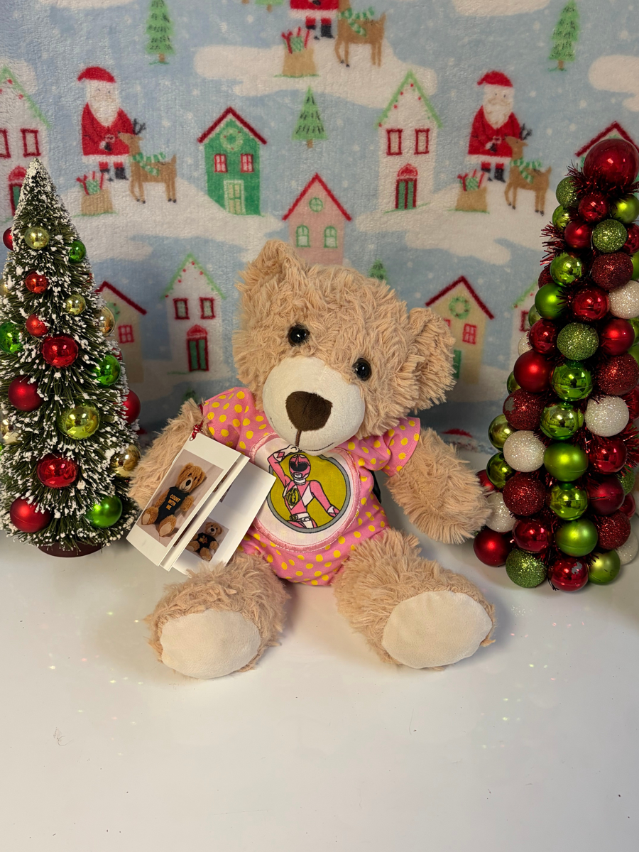 Mighty Pink Piper is a hand-crafted burst of bravery and sparkle, dressed in a bright pink Power Rangers–themed shirt dotted with cheerful yellow polka dots. With her soft tan fur, confident smile, and adventurous spirit, Piper is the perfect companion for little heroes who love action, imagination, and heart-filled play. Piper proudly carries her How to Count book, ready to help her new friend learn numbers with excitement, confidence, and Power Ranger energy. Whether she’s joining pretend rescue missions, sitting proudly beneath the Christmas tree, or offering big cuddles after a long day, Mighty Pink Piper brings courage, joy, and fun to every home. Handmade with love, powered by imagination — Piper is ready to meet her forever friend.