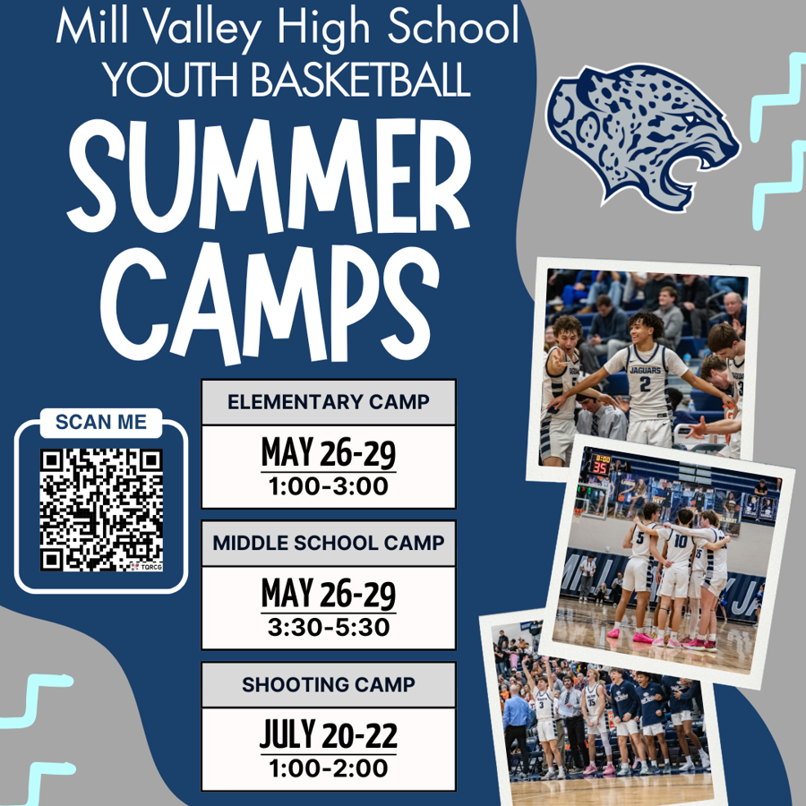 One lucky winner will enjoy free registration for the Mill Valley Jaguar Summer 2026 Boys Shooting Camp for incoming 2026/2027 grades 3-8. The camp will focus on teaching skills and confidence to become a better shooter. The camp will be held Monday, July 20 to Wednesday, July 22nd from 1:00-2:00 PM at Mill Valley High School.