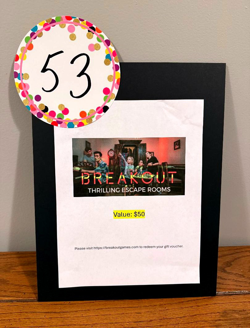 Welcome to the Mind Maze auction! Get ready for an exhilarating adventure with our exclusive Breakout games and Escape rooms experience. This thrilling opportunity allows you to immerse yourself in a series of mind-bending puzzles and challenges that will test your wits and teamwork. Unlock the door to an unforgettable escape room experience, where every corner holds a new mystery to unravel. Join us in the Mind Maze and see if you have what it takes to break out before time runs out! Don't miss your chance to bid on this exciting journey into the world of escape games! This auction item includes: - $50 gift card to Breakout Games escape rooms