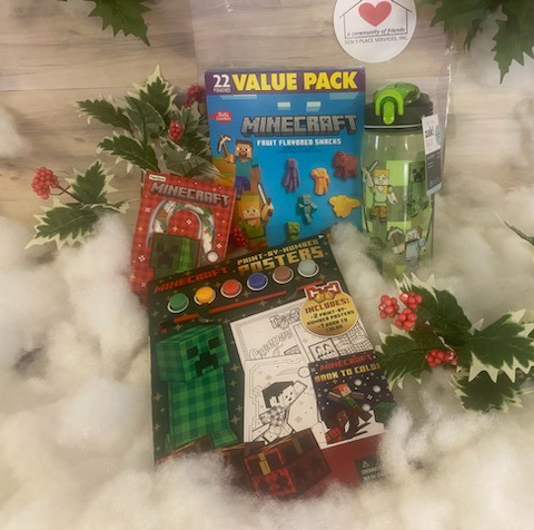 What a holiday gift this will be a Minecraft covered cup, Minecraft paint set, the large box of Minecraft fruit snacks and a large Minecraft candy cane. What kid wouldn't love it.