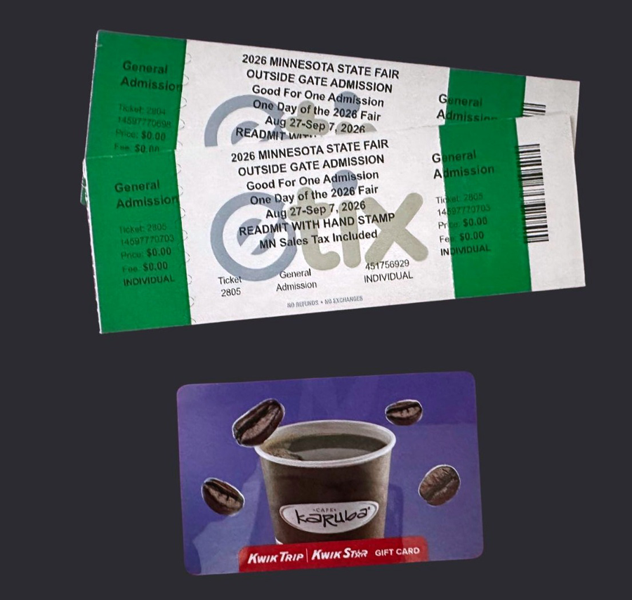 Experience the excitement of the Minnesota State Fair with 2 tickets that grant you access to all the fun and festivities. Enjoy thrilling rides, delicious food, and incredible entertainment as you explore everything the fair has to offer. To make your visit even more enjoyable, you'll also receive a Kwik Trip gift card, perfect for grabbing snacks or drinks while you wander the fairgrounds. Don't miss out on this fantastic opportunity to create lasting memories at the Minnesota State Fair!