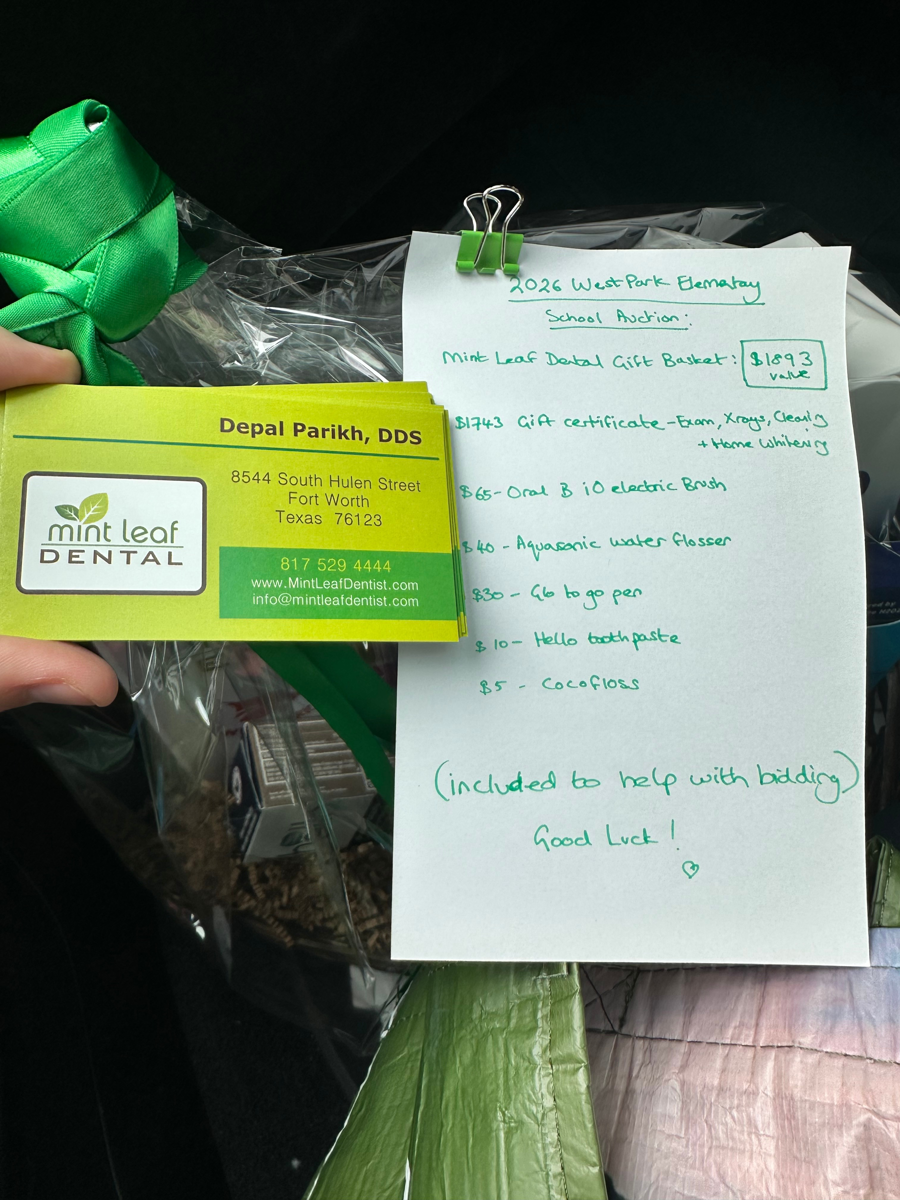 Introducing the Mint Leaf Dental Basket, a perfect package for anyone looking to enhance their oral health and smile. This exclusive auction item features a $1,743 gift certificate that covers a comprehensive dental exam, X-rays, and a thorough cleaning. To help maintain that fresh and bright smile at home, the basket includes an Oral B IO Electric Brush and an Aquasonic Water Flosser, ensuring you have the best tools for effective oral hygiene. Additionally, enjoy the convenience of the Glo to Go pen for on-the-go whitening, along with Hello Toothpaste and Cocofloss for daily care. Don't miss this opportunity to invest in your dental health with the Mint Leaf Dental Basket!