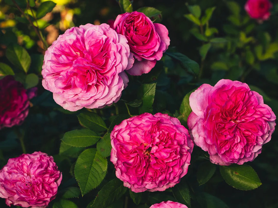 Floribunda Moco Muse is a captivating rose that enchants with its vivid magenta-pink blooms, perfectly sculpted in a classic, full-petaled form. Each flower seems to glow with depth and richness, catching the light to reveal delicate tonal variations across its velvety petals. The blooms unfold gracefully, revealing a harmonious balance of structure and softness, while the foliage provides a lush, green backdrop that enhances its radiant hue.