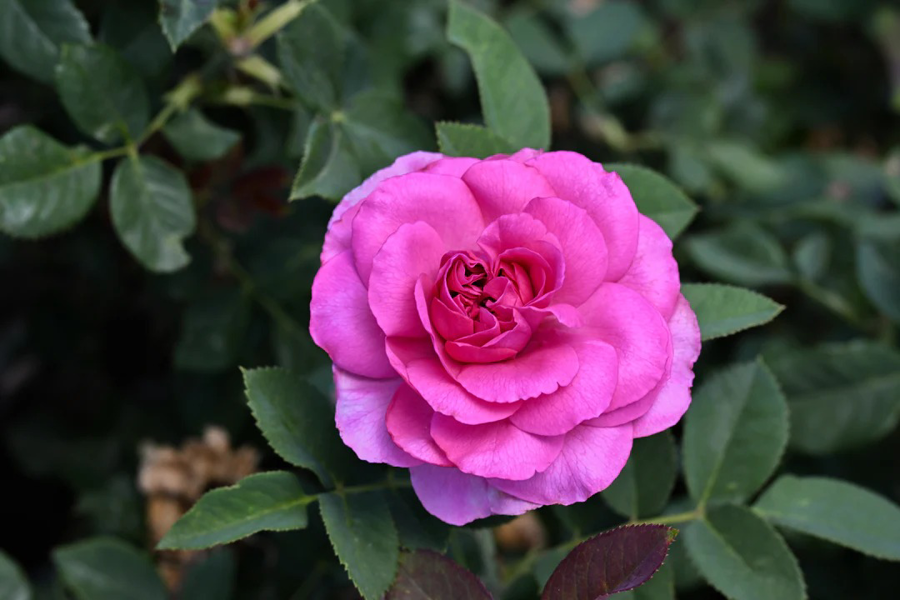 Floribunda Moco Muse is a captivating rose that enchants with its vivid magenta-pink blooms, perfectly sculpted in a classic, full-petaled form. Each flower seems to glow with depth and richness, catching the light to reveal delicate tonal variations across its velvety petals. The blooms unfold gracefully, revealing a harmonious balance of structure and softness, while the foliage provides a lush, green backdrop that enhances its radiant hue.