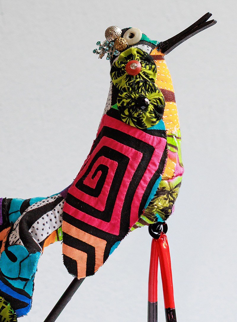 12 in. high x 7 in. wide. Fiber artist Billie McCray’s birds are an Amelia Island favorite. In addition to these, Billie uses discarded objects to create dolls, purses, wall hangings, baskets, bears and furniture pieces. Billie has shown at NASA, the Ritz Theatre and LaVilla Museum, Haskell Gallery at Jacksonville International Airport, Jacksonville Women’s Center, craft shows, the Riverside Fine Art Series, MOCA and the Cummer Museum.