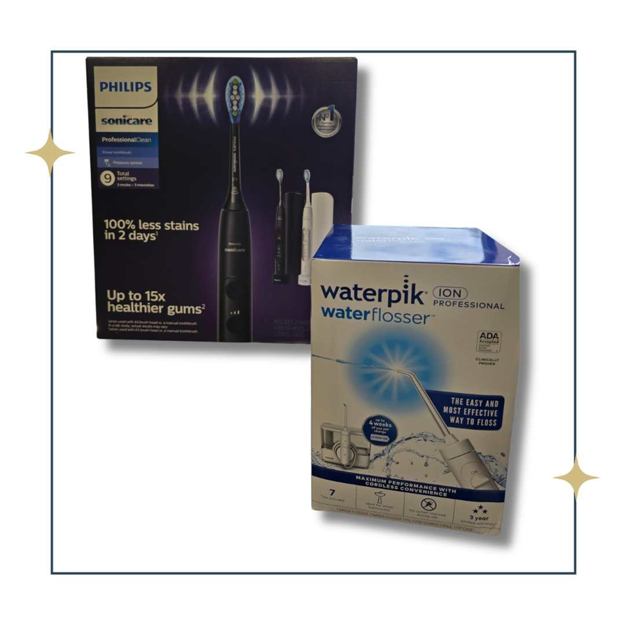 Upgrade your daily routine with this practical and powerful dental care package! This set includes a Waterpik Water Flosser and a Philips Sonicare Professional Clean electric toothbrush — two trusted tools designed to help you achieve a cleaner, healthier smile. Perfect for anyone looking to elevate their oral care, this bundle combines convenience, effectiveness, and professional-quality results right at home.