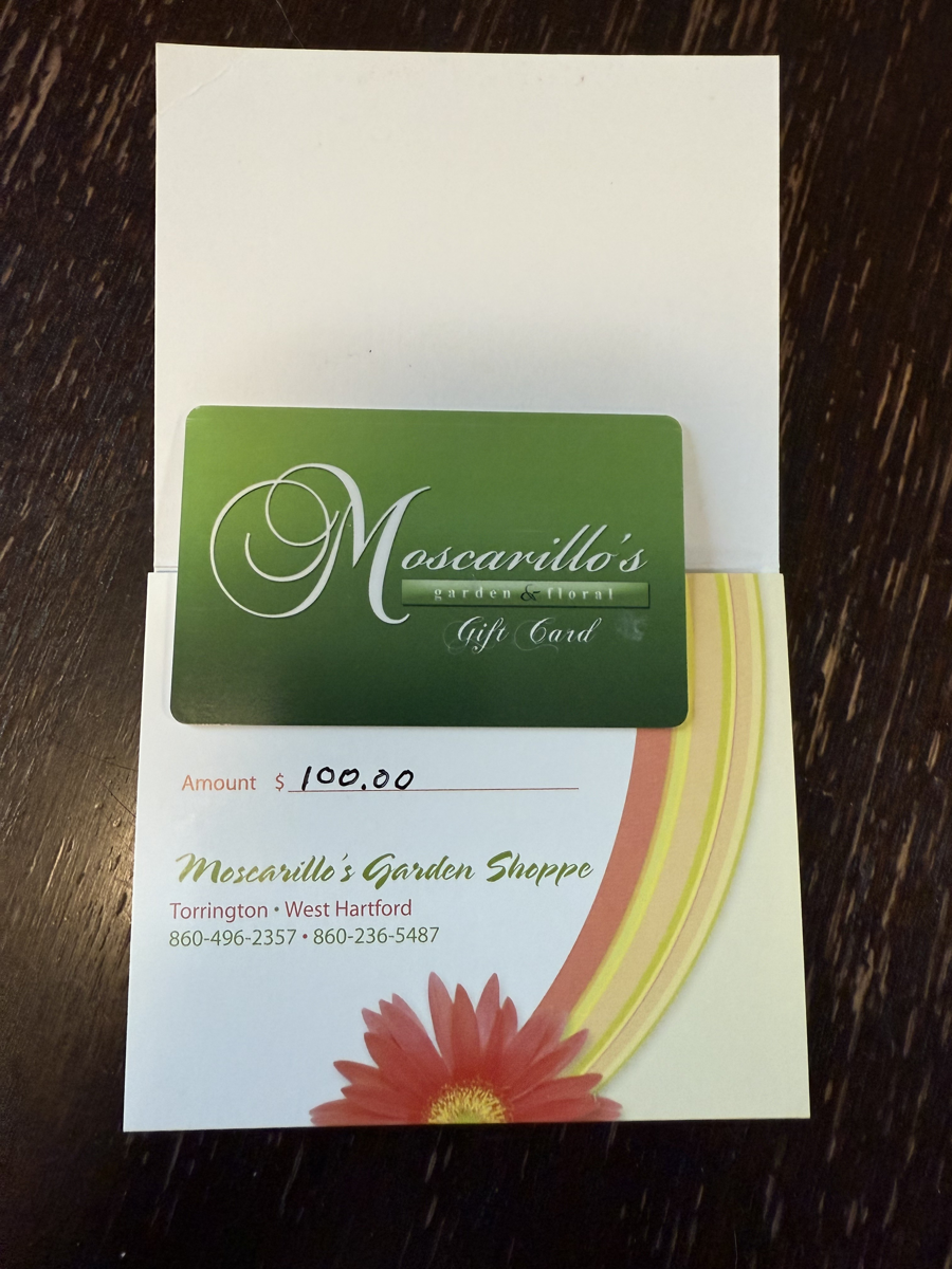 This generous Moscarillos Garden Center gift certificate will give you so many choices of how to spend it. Their nursery is magical and their flowers known far and wide. Put more color in your life, make your garden shine, share a beautiful flower arrangement andhelp the bees, birds and insects enjoy your selection as well!