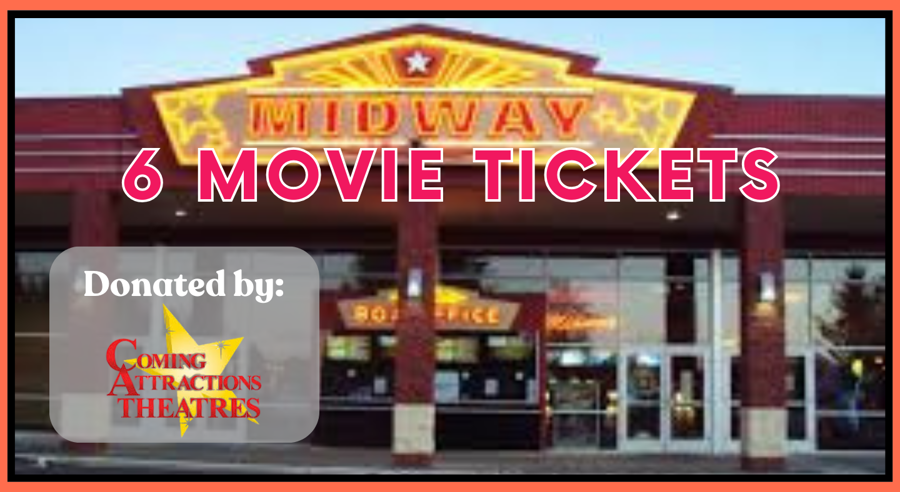 6 movie tickets to Midway theatres in Chehalis.