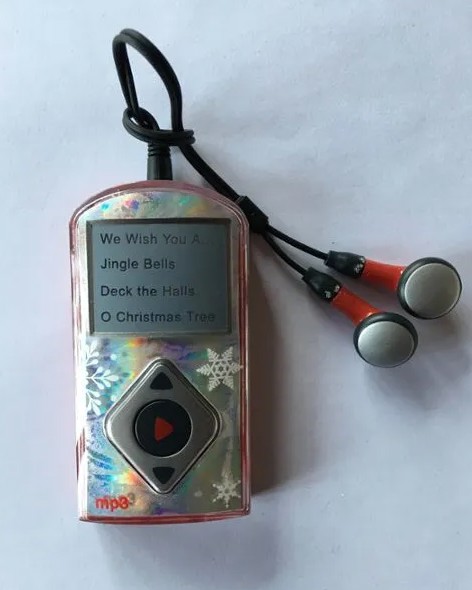 Keepsake in original box. A Hallmark Keepsake ornament, MP3 Player - Personal Audio, has the magic of sound and light. It is handcrafted and dated 2006. Your new MP3 has been pre-downloaded with the hottest seasonal song snippets, expertly shuffled and sorted to secure full-spectrum streaming. MP3 represents a state-of-the-art marvel of elf ingenuity. This music player features and interface capacity carefully calibrated to bring abounding joy to your holiday. Plays four Christmas songs from four musical genres: jazz, country, hip-hop and classic rock. Battery-operated, batteries not included. Donated by Sandi English.