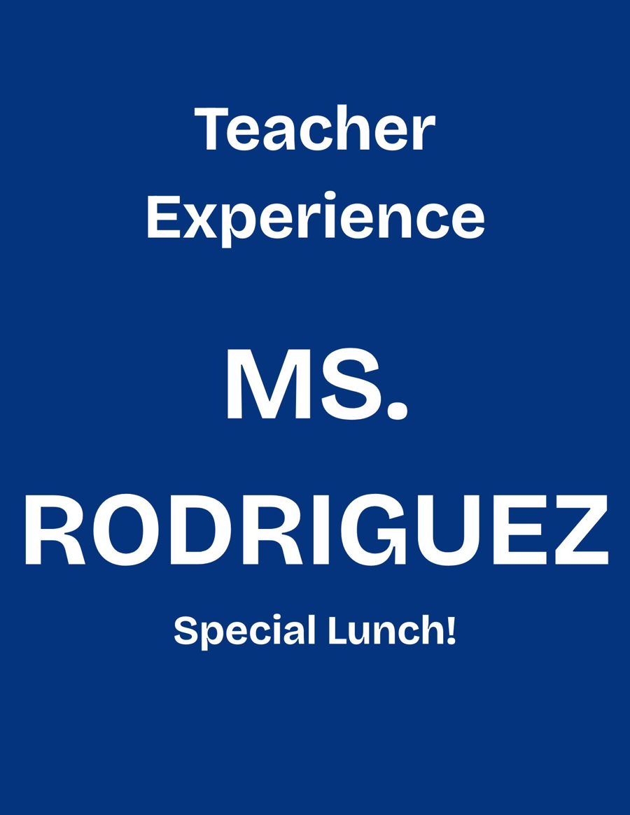 Your child will join Mrs. Rodriguez for a special lunch at school!