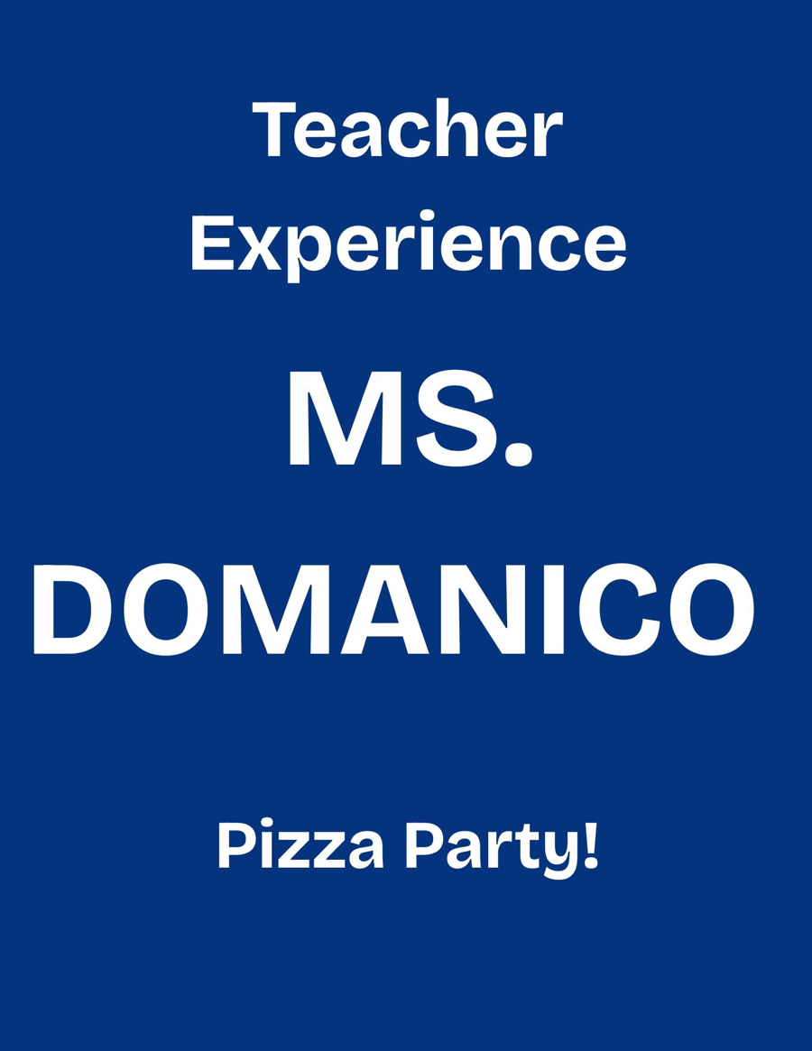 Enjoy a lunch time pizza party with Ms. Domanico and 3 friends!