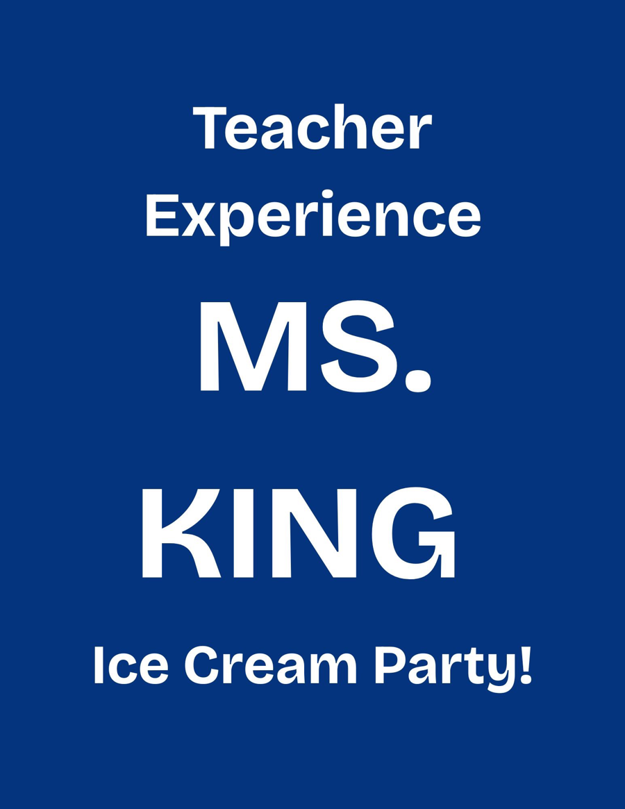 I scream, you scream, we all scream for ice cream! Your child and a friend will join Ms. King after school for an ice cream party!