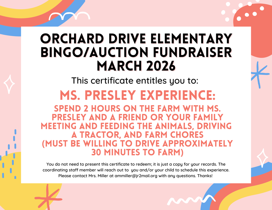 Thank you for supporting the Orchard Drive Elementary PTO! We are grateful for you and appreciate your donation!