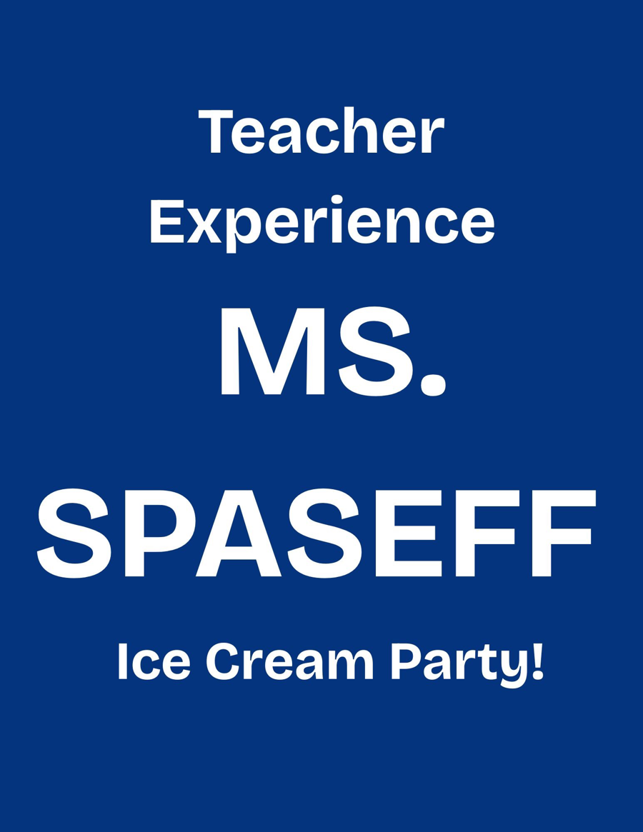 I scream, you scream, we all scream for ice cream! Your child and a friend will join Ms. Spaseff after school for an ice cream party!