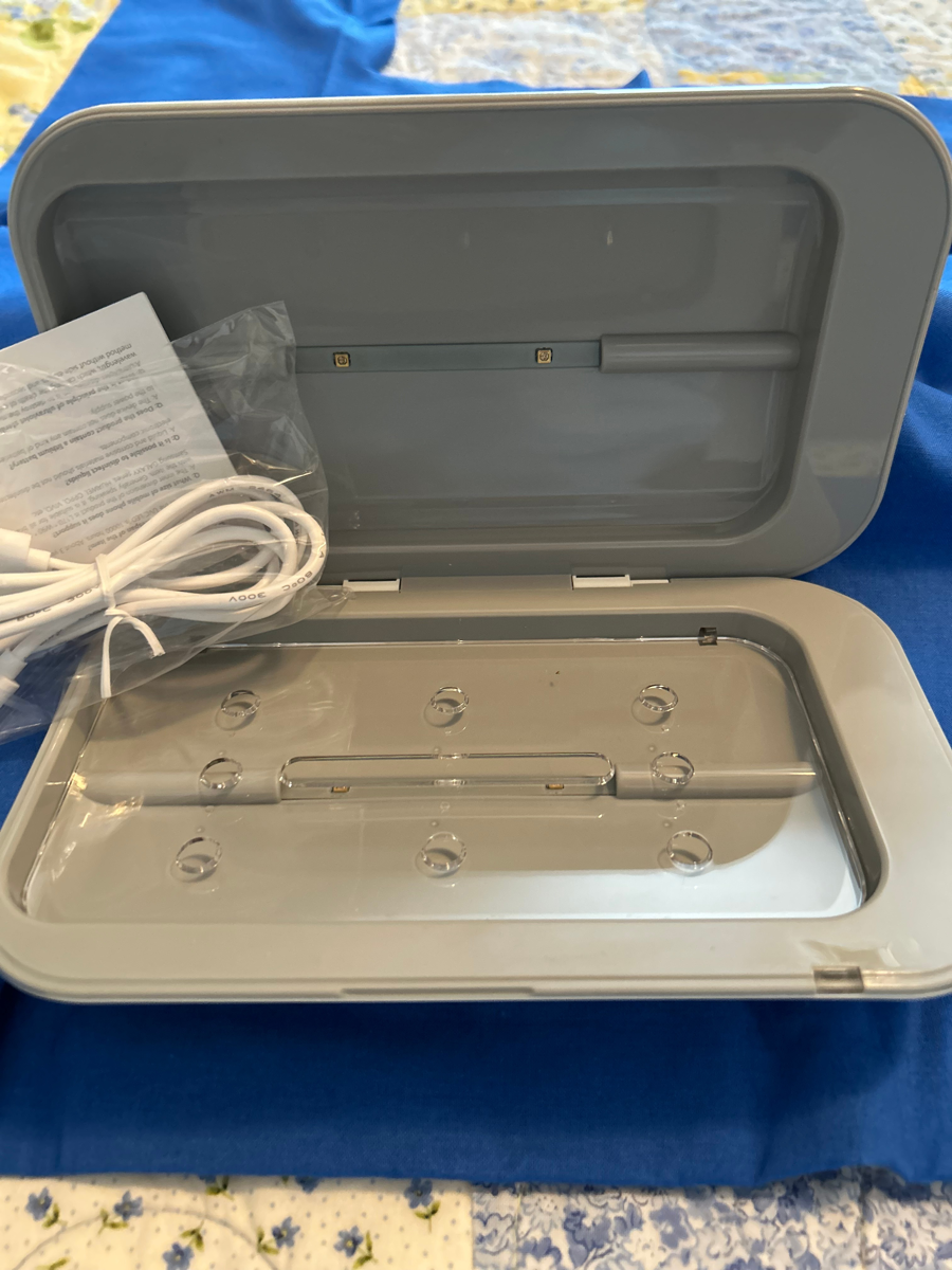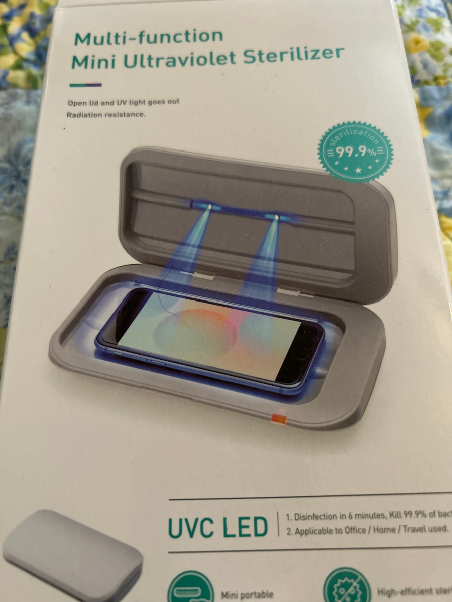 Portable multi-function UV Sterilizer which disinfects in as little as 6 minutes. The device is easy to use and can clean smaller items routinely carried in potentially hazardous areas such as cell phones and writing utensils used in hospitals, clinics, and loboratories.