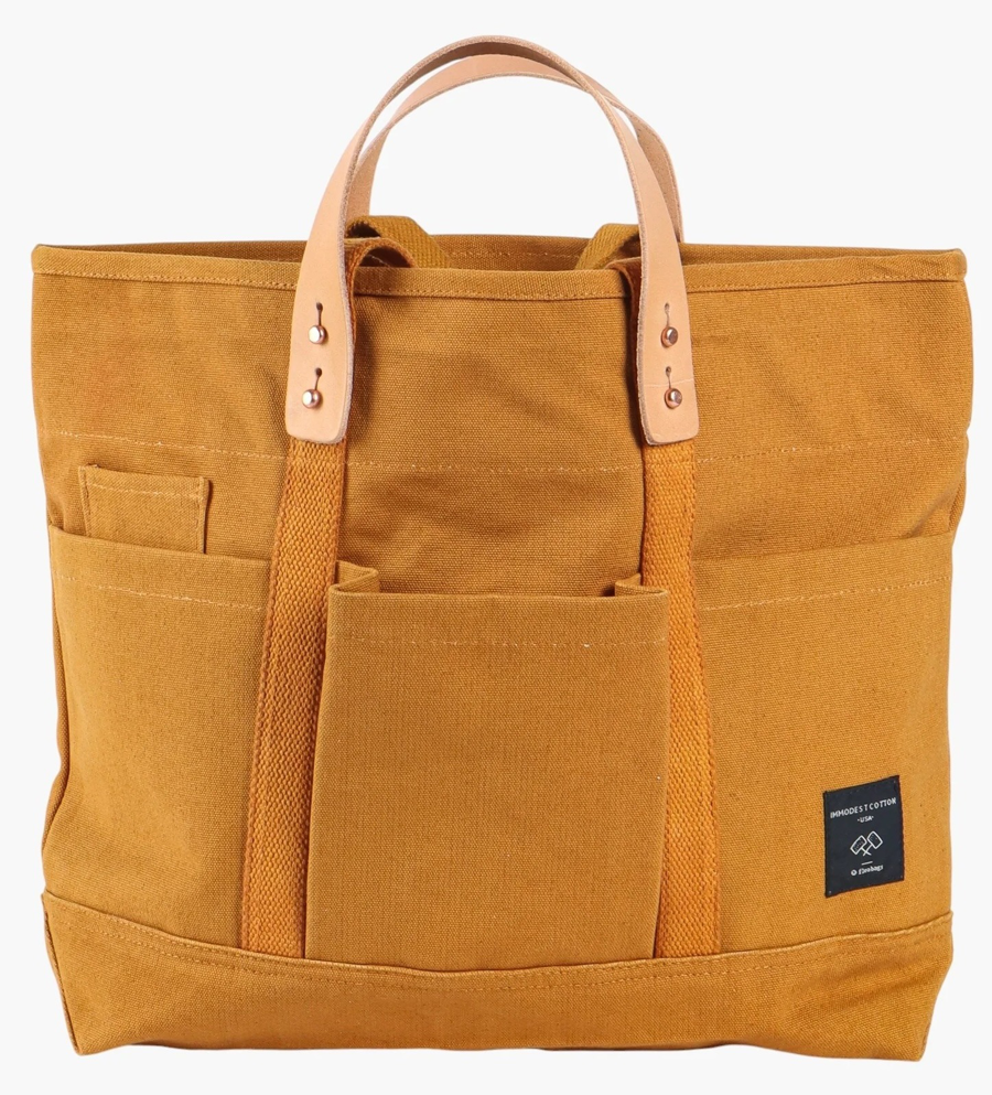 If you’re a painter or a parent or a working person or someone who goes to the gym, you will appreciate all the extra organization this custom-dyed tote provides.
