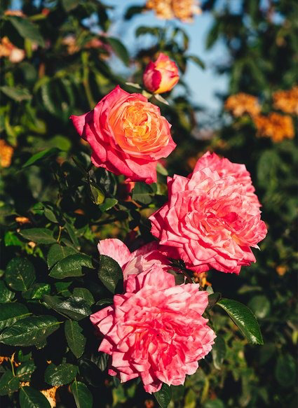 Floribunda Discover timeless elegance with this hybrid shrub’s voluminous, vibrant pink blooms. Each rose boasts over 100 quilt-shaped petals tinged with whispers of orange that fade gracefully to white, offering an ever-changing masterpiece. The rounded, upright shrub exudes abundance with multiple blooms per stem, offering an exquisite way to elevate any garden