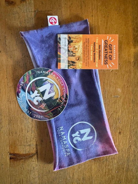 Awesome Stocking Stuffer! Includes: Namaspa Branded Manduka sweatband Namaspa Sticker Namaspa Gift of Greatness Yoga Pass Gift of Greatness passes can be used for an unlimited week of yoga for new students or a single free class pass for returning students.