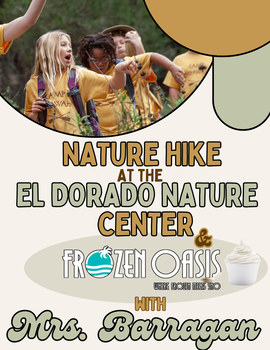 Nature Hike at El Dorado Nature Center and Frozen Oasis with Mrs. Barragan! The winner can bring a friend to join the fun!