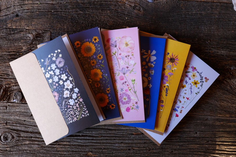 Bring the beauty of nature into your home with this exquisite 16x20 archival-quality pressed floral print and a pack of six pressed floral cards, both created by local artist Kate Punnett.