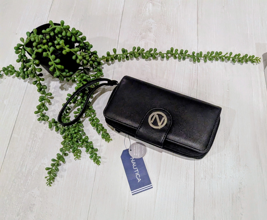 Stay organized and stylish with this Nautica large wristlet. Perfect for carrying your essentials on the go, this versatile piece combines fashion and function in one sleek design. A special thank you to Debra for this wonderful donation!
