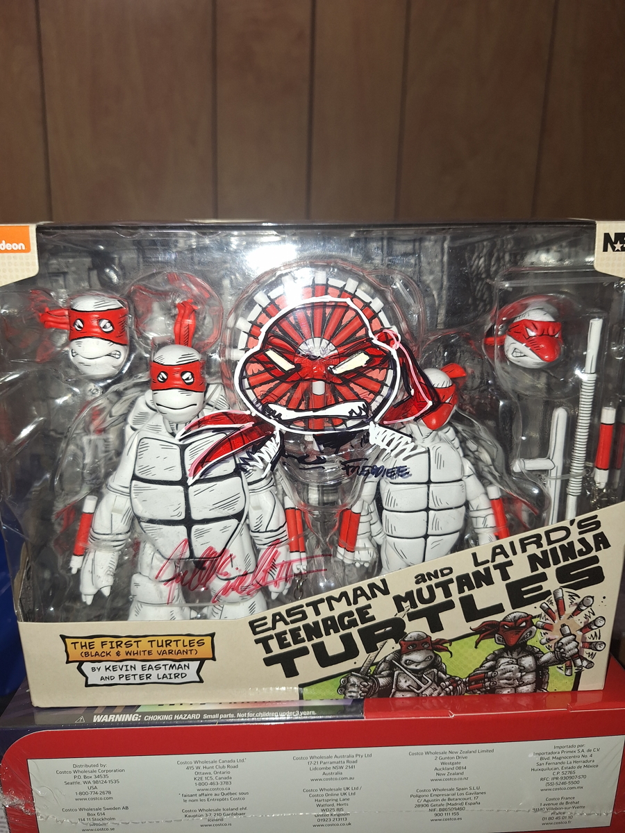 Cowabunga, collectors! 🐢💥 Up for auction is a NECA Teenage Mutant Ninja Turtles (Black & White Variant) figure box, featuring an original Ninja Turtle remarque sketch by acclaimed comic book artist Freddie Williams II — best known for illustrating the Batman/Teenage Mutant Ninja Turtles crossover series and multiple TMNT titles. 🎨 Item Details: NECA TMNT (Black & White Variant) collectible figure Features a hand-drawn remarque of a Ninja Turtle by Freddie Williams II directly on the packaging A rare fusion of fine art and collectible design Perfect for fans of the Teenage Mutant Ninja Turtles, Batman/TMNT comics, and serious NECA figure collectors This one-of-a-kind piece bridges two worlds — the detailed craftsmanship of NECA’s collector line and the creative artistry of one of TMNT’s most celebrated illustrators. A true must-have for any Turtle fan or comic art enthusiast! 📦 Shipping available at buyer’s cost, or pick up at Collector Fest 2025.