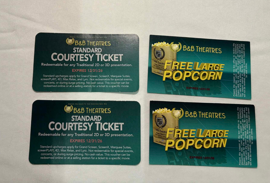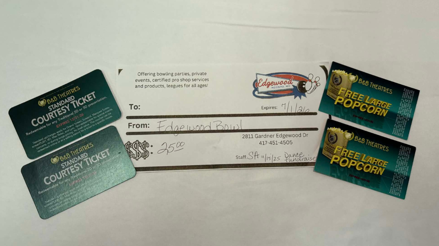B&B Movie Theater: 2 movie tickets & 2 large popcorn Edgewood Bowling: $25 gift certificate