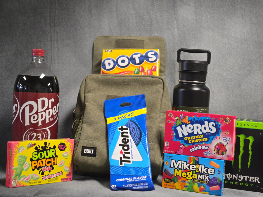 Description: Are you a tired Night shifter who is looking for ways to survive? Well look no further, the Night Shift Survival Basket has you covered. This basket contains: A 6 Pack of 12oz original Monster Energy, Jam packed with all the caffeine you need. A 2L of Dr. Pepper - Just a nice drink to keep you moving. A 40oz Ozark Trail Thermos to keep that hot coffee hot. A BUILT lunchbox to keep that lunch fresh. A 3 Pack of gum to chew. A box of Sour Patch Kids A box of Mike and Ikes A box of Dots And A box of Nerds clusters Basket Designed by Kaleb, A fellow Night shifter,