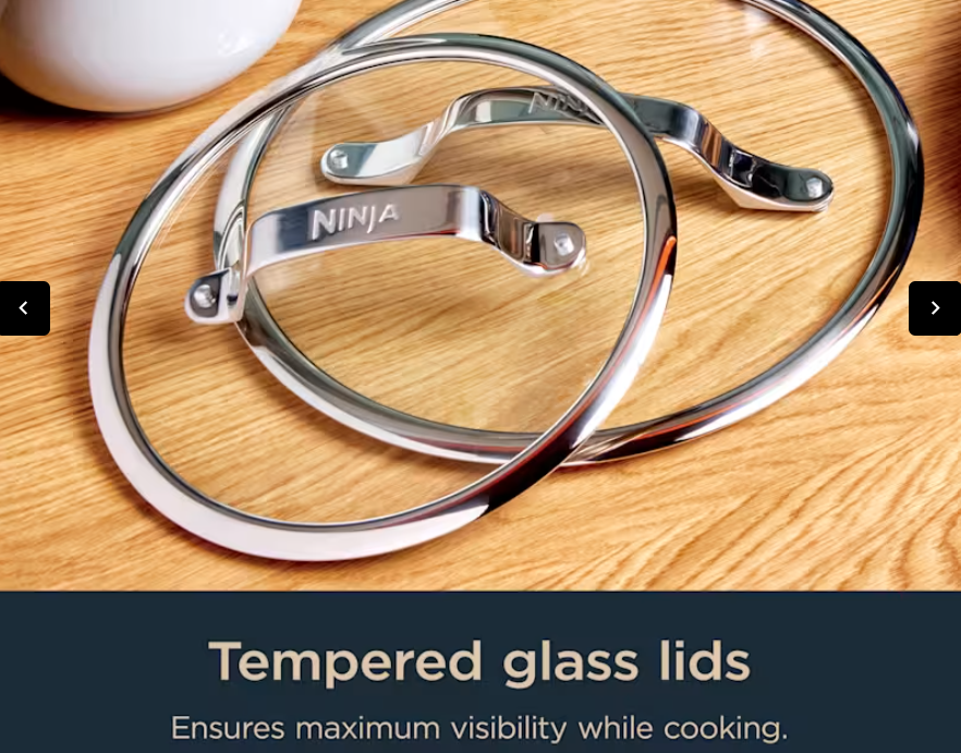 Meet the Ninja® Ceramic Pro cookware, Ninja’s most premium ceramic. Our Titanium-infused ceramic coating ensures long-lasting nonstick performance with a 10-year nonstick guarantee. Cook with a peace of mind on a cooking surface made without PTFE, PFOA, or PFAS, no lead or cadmium, and no hard anodization. ($299 value) 8-Inch Fry Pan 9.5-Inch Fry Pan 3-Quart Sauté Pan with Lid 1-Quart Saucepan with Lid 2-Quart Saucepan with Lid 5-Quart Stock Pot with Lid