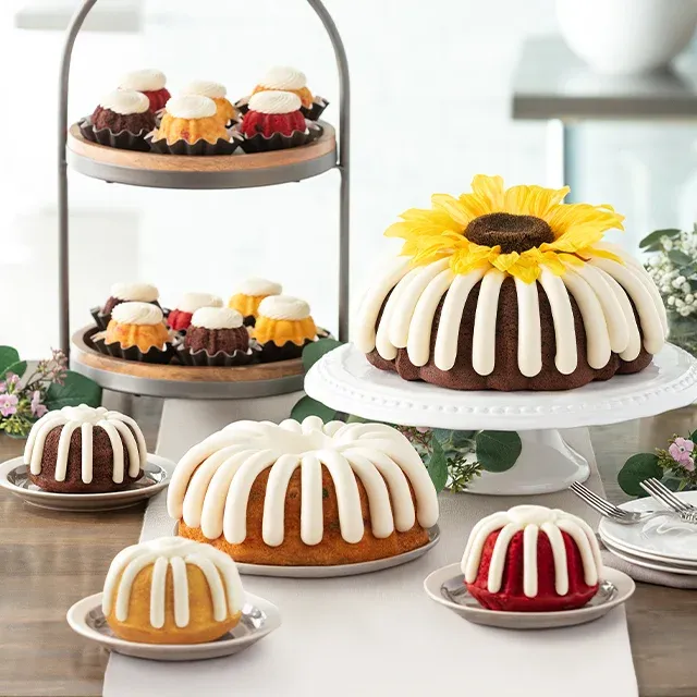 Indulge in the delightful Nothing Bundt Cakes Basket, a perfect treat for any occasion. This exquisite basket includes four scrumptious Bundlets, each offering a unique flavor that will tantalize your taste buds. Additionally, you’ll receive an elegantly decorated 8" cake, perfect for celebrating milestones or simply enjoying a sweet moment. Whether you're looking to gift someone special or treat yourself, this Nothing Bundt Cakes Basket is sure to impress and satisfy your cravings. Don't miss out on this delicious opportunity!