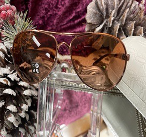 # 1011 - Elegant Oakley 4079 Sunglasses offer a perfect current fashion moment. Constructed from metal full-rim frame in Rose Gold tone made for women. Pilot Aviator style shape lens with comfortable silicon nose pads for hassle free wear. Fashionable, perfect for a casual accessory for roaming city streets or sunny days in the mountains. NEW / Not redeemable for cash.