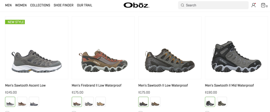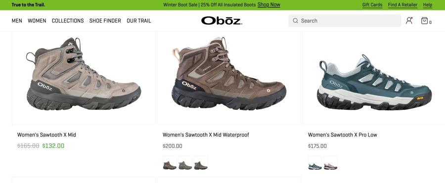 Hit the trail in a brand new pair of Oboz hiking shoes or boots! Check out their website for a taste of their quality and styles, as well as sales. Obozfootwear.com