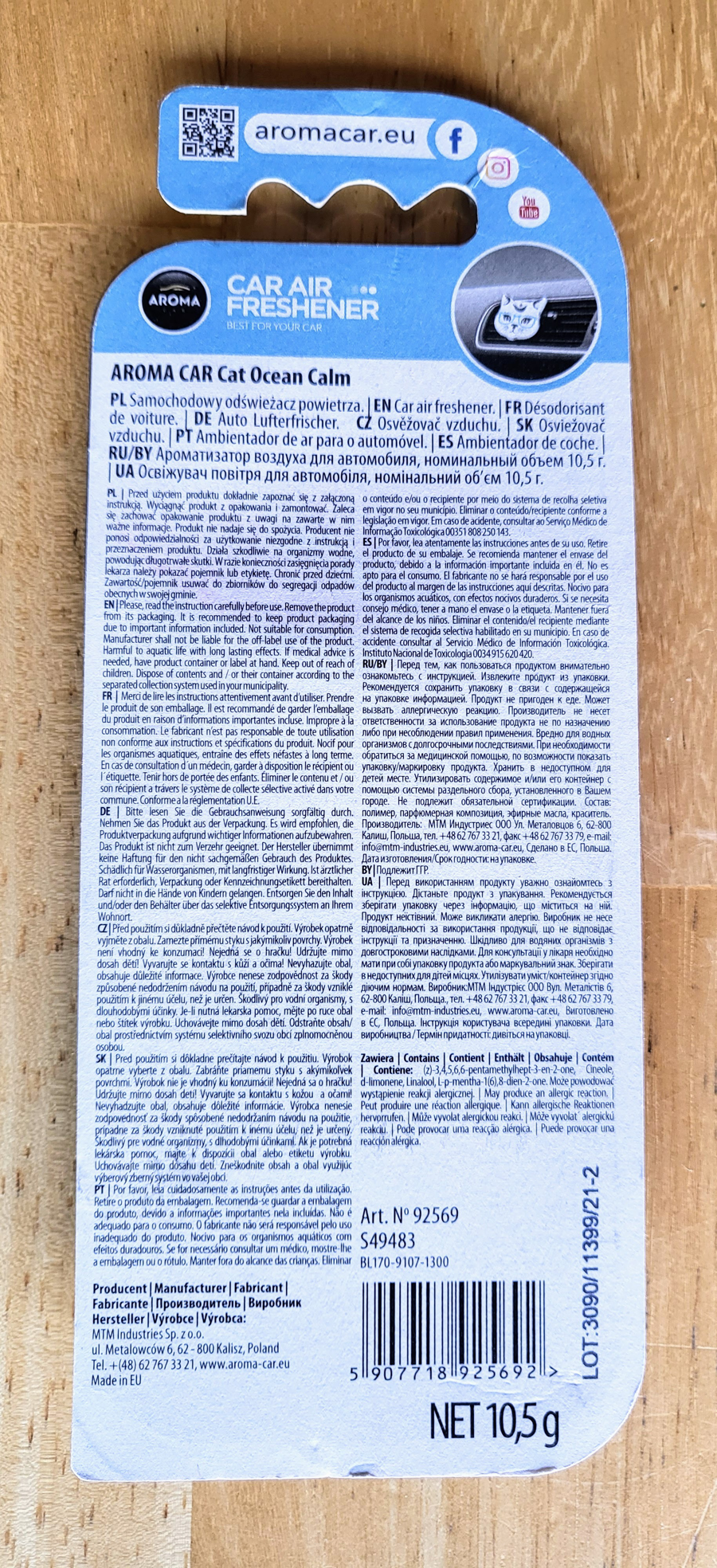 Keep your car smelling sweet with this Ocean Calm Air Freshener.