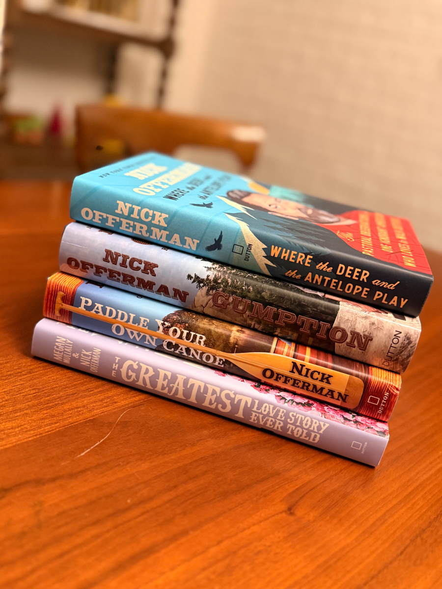 Grab your favorite liquid refreshment and curl up with four books written and signed by Nick Offerman and his hilarious wife and tv superstar Megan Mullally. Titles are: