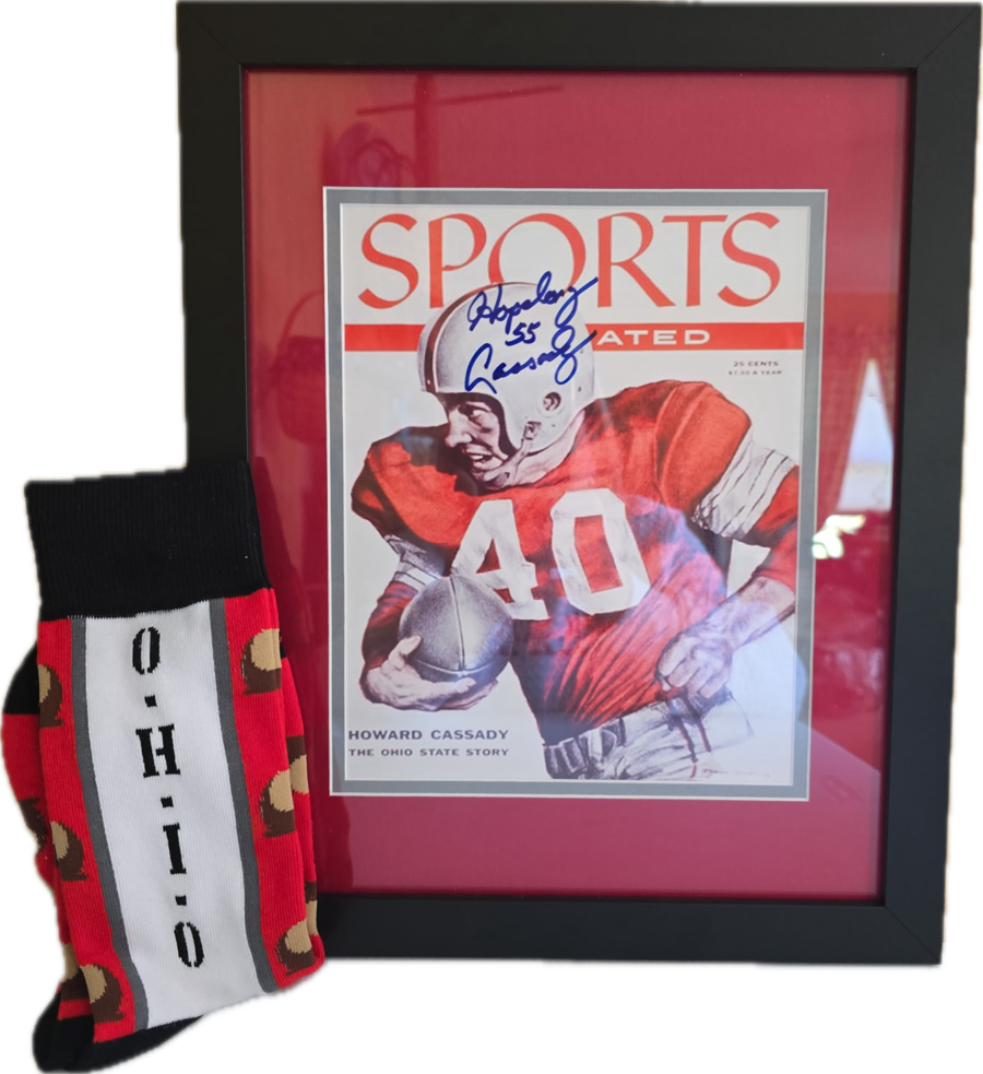 Up for auction is a remarkable piece of memorabilia for any Ohio State fan: a Sports Illustrated signed picture of Hopalong Cassidy, a legendary player from OSU. This unique item captures the essence of Ohio State's rich sports history and is a must-have for collectors. Along with the signed picture, you'll also receive a pair of Ohio State socks, perfect for showcasing your Buckeye pride. Don't miss this opportunity to own a piece of Ohio State legend!