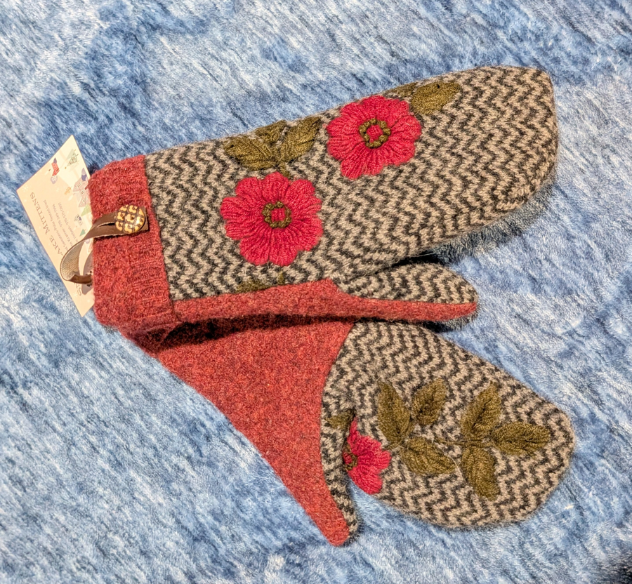 Auction Items: Olive Green, Maroon and Magenta Floral Mittens Donated by: Toby Bobbitt