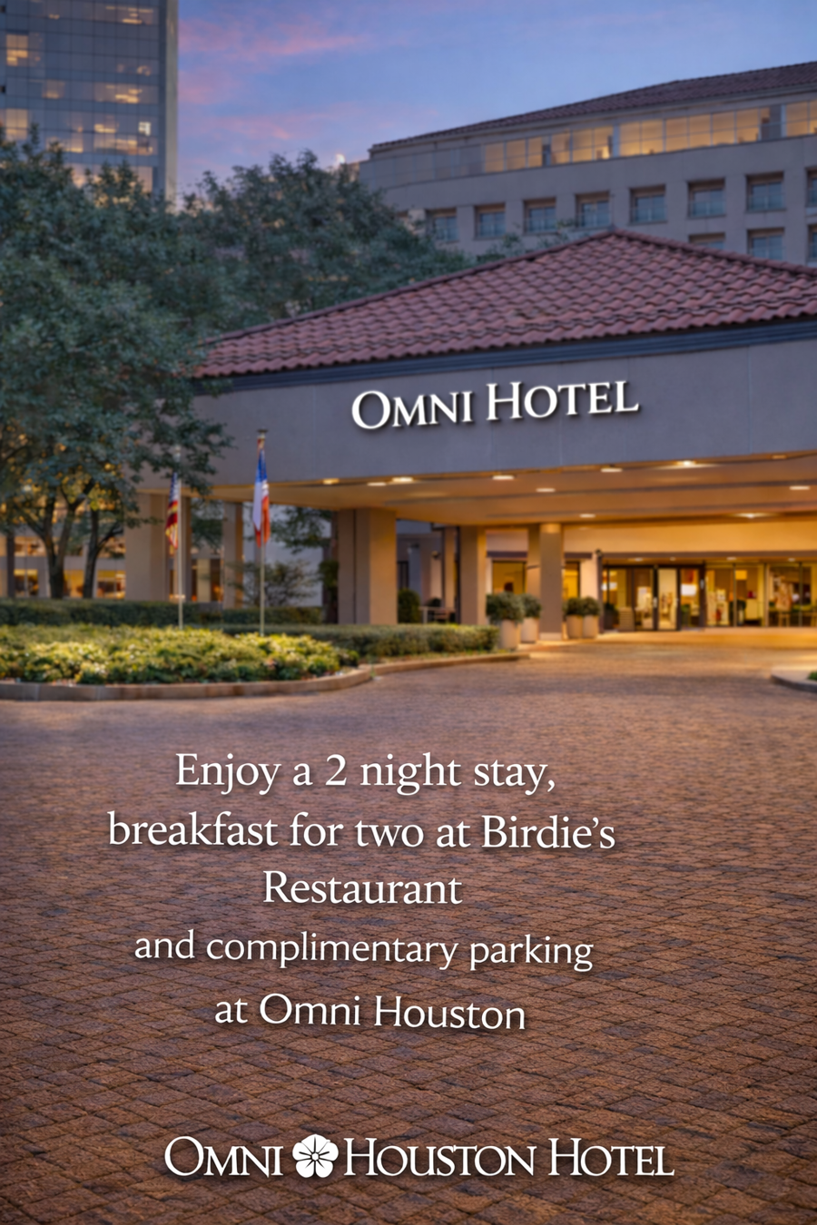 Enjoy a two night stay at Omni Houston along with breakfast for two at Birdies Restaurant and complimentary self parking