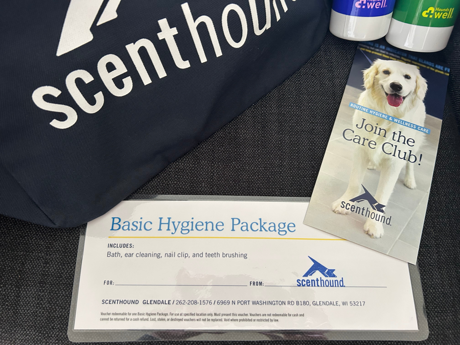 Keep your pup looking and feeling their best with this basic hygiene package for a dog at Scenthound! Includes two bottles of doggie shampoo. Perfect for bath time and regular grooming to keep your furry friend clean, fresh, and happy.