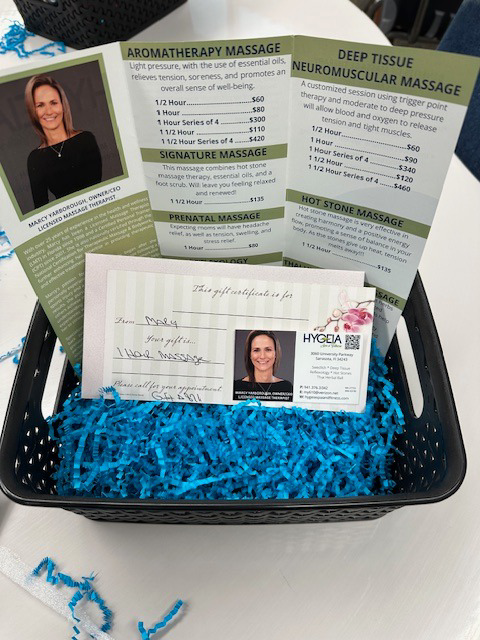 Melt away the holiday stress with a 1-hour massage at Hygeia Spa and Fitness with Certified Massage Therapist and Owner, Mary Yarborogh. The winner can choose from a variety of massages, including: aromatherapy, hot stone, and deep tissue. $80 value. About Marcy: With over 25 years of experience in the health and wellness industry, Marcy has been a Licensed Massage Therapist (LMT) in Florida since 1998 and a Certified Personal Trainer (CPT) since 2001. She is also nationally certified through the National Certification for Therapeutic Massage & Bodywork, further enhancing her expertise in providing therapeutic and effective treatments. Our mission is to provide a one-stop destination for all your health and fitness needs—offering a seamless, boutique-style experience that’s as individual as you are. Whether it’s a soothing massage, rejuvenating facial, or customized personal training session, we offer a curated selection of services designed to elevate your fitness and self-care journey. At Hygeia Spa and Fitness, we redefine convenience, bringing you a goodness of health concept that takes your well-being to the next level.