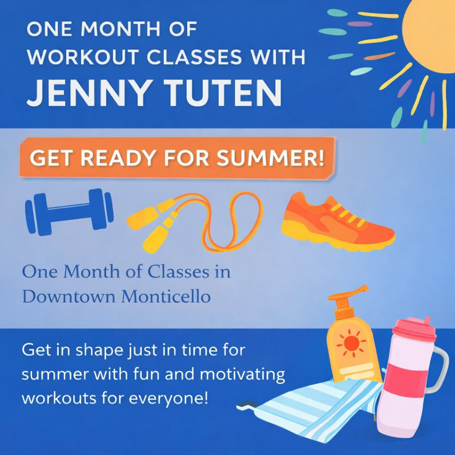 Summer is on its way — get moving and feel your best with one month of workout classes led by Jenny Tuten in downtown Monticello! Whether you’re looking to build strength, boost energy, or simply stay active, these classes offer a fun and encouraging environment for all fitness levels.